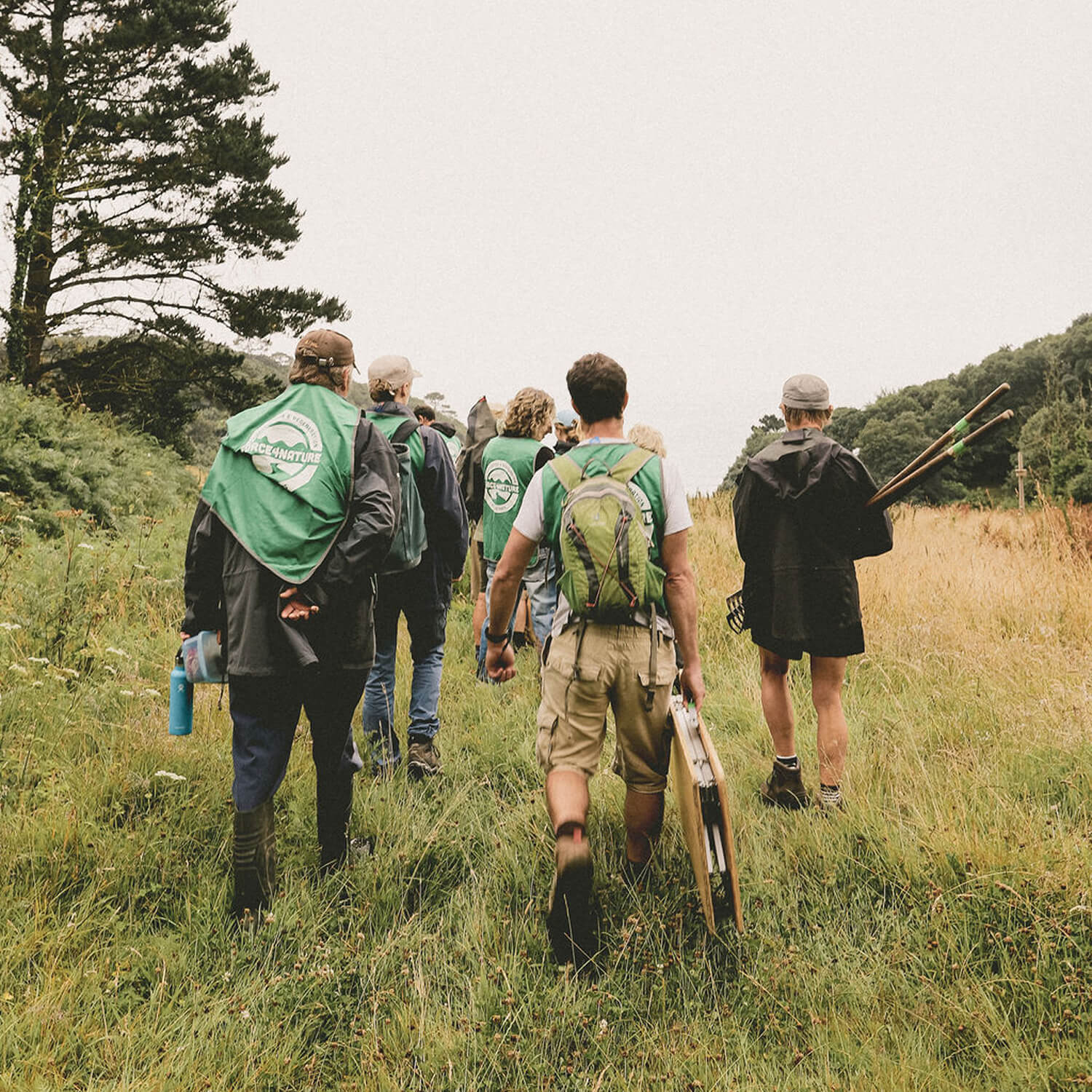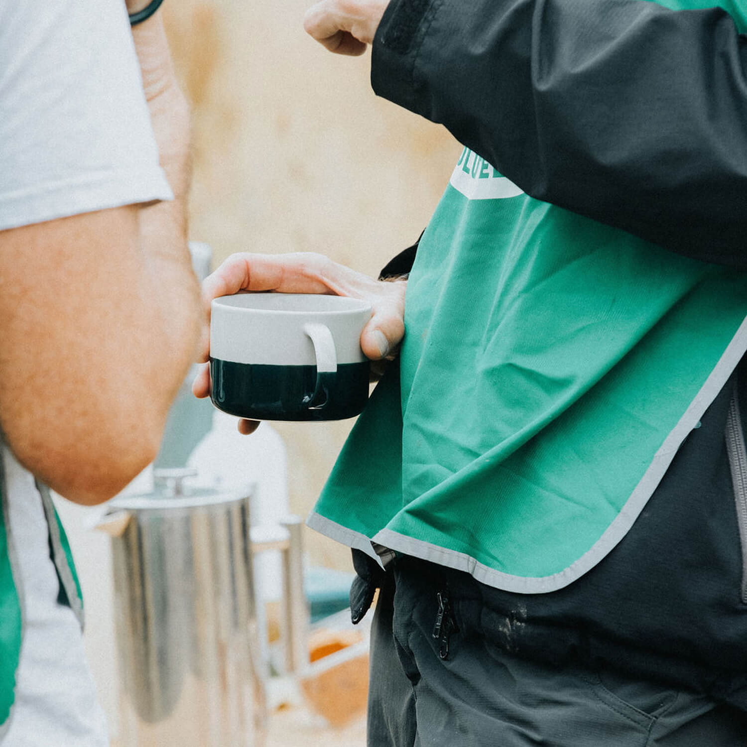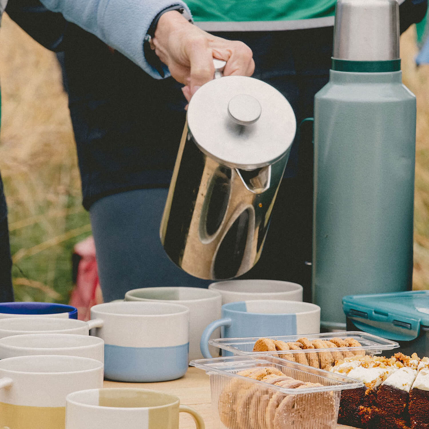 Each volunteer day kicks off with a cup of tea or coffee and a catch-up — Gary makes sure priorities are in order! A camping table is set up, in this case overlooking the beautiful Mothecombe Bay, and out come two enormous hot water canisters, a variety of teas, and fair-trade fresh coffee. Soon everyone is pouring, sharing, and enjoying a drink, not to mention the cake and biscuits. Even the typical British drizzle can’t dampen the spirits. Conversations flow, stories from the week are shared, and friendly banter sparks plenty of laughter.