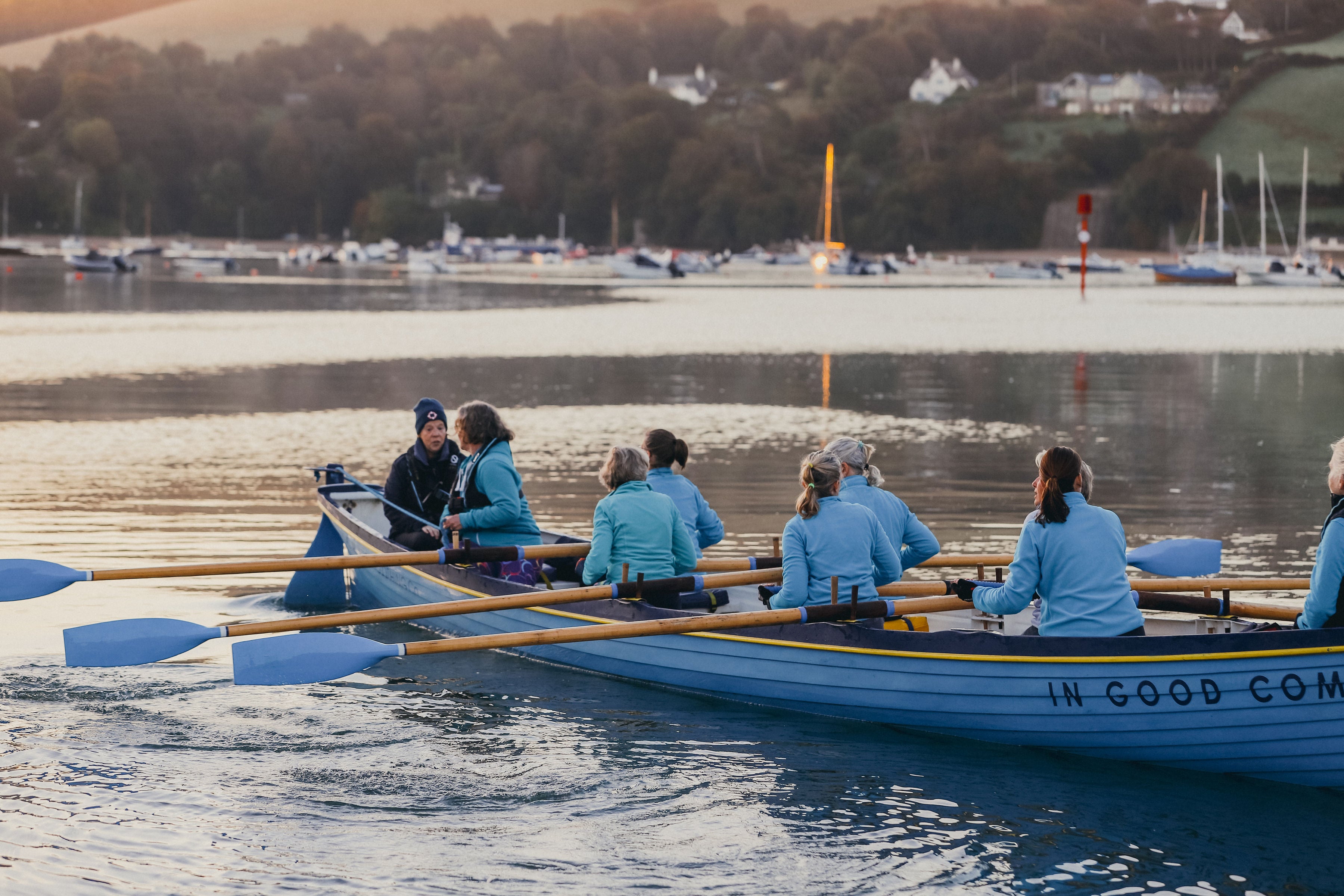 Each week, the aptly named In Good Company gig is rowed across the estuary to a beach of choice. Before coffee and cake can be served, the group jumps in for a quick sea swim. UK waters in October are not for the faint-hearted, but this only seems to add to the joy. The world is then firmly set to rights over coffee and cake on the beach, followed by more rowing.