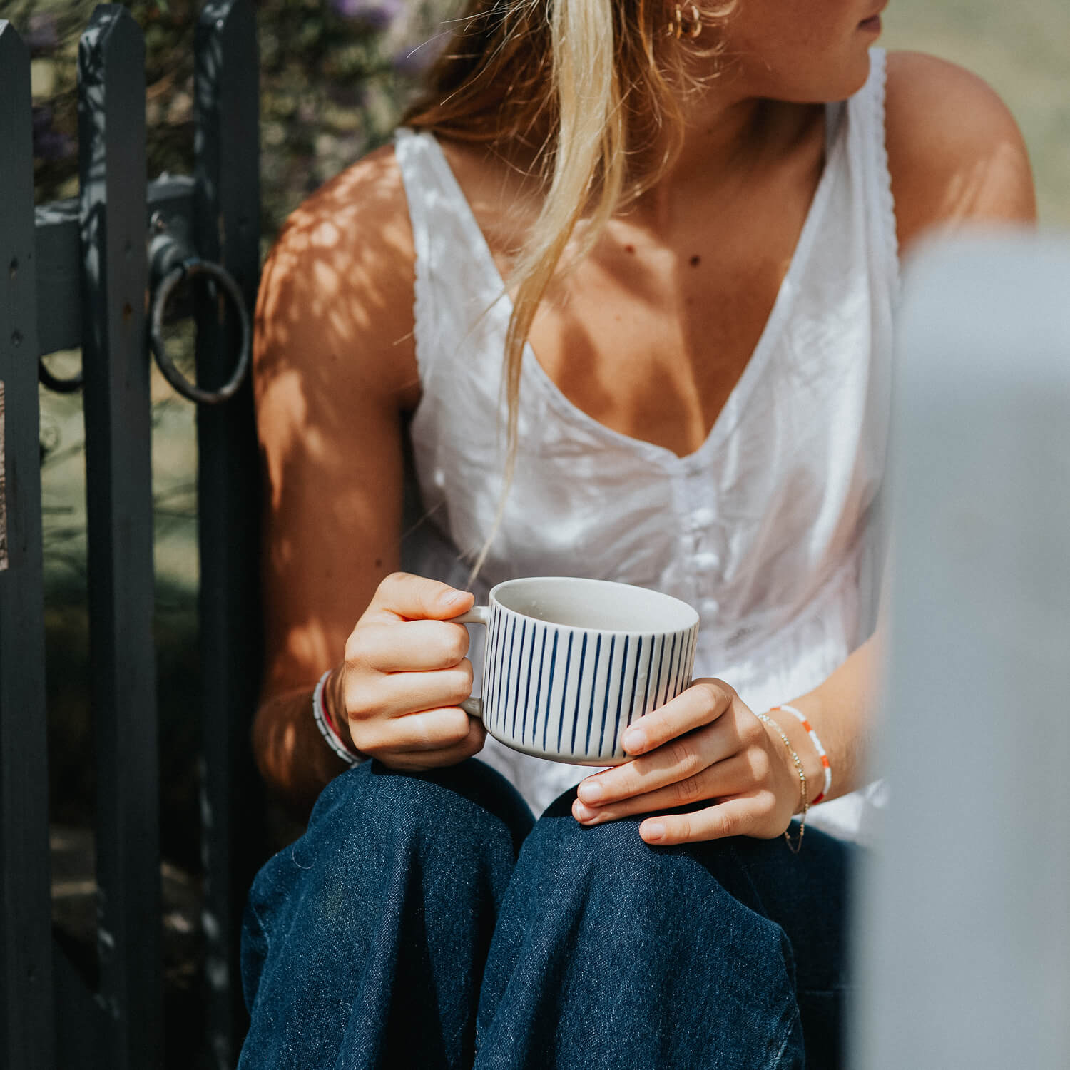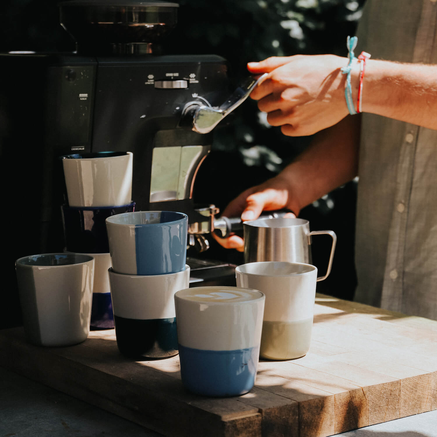 Each pair of Rue Beakers are individually hand-dipped in a smooth slip glaze, a traditional ceramic technique where the vessel is lowered by hand into liquid glaze, creating natural, flowing lines that make every piece unique.